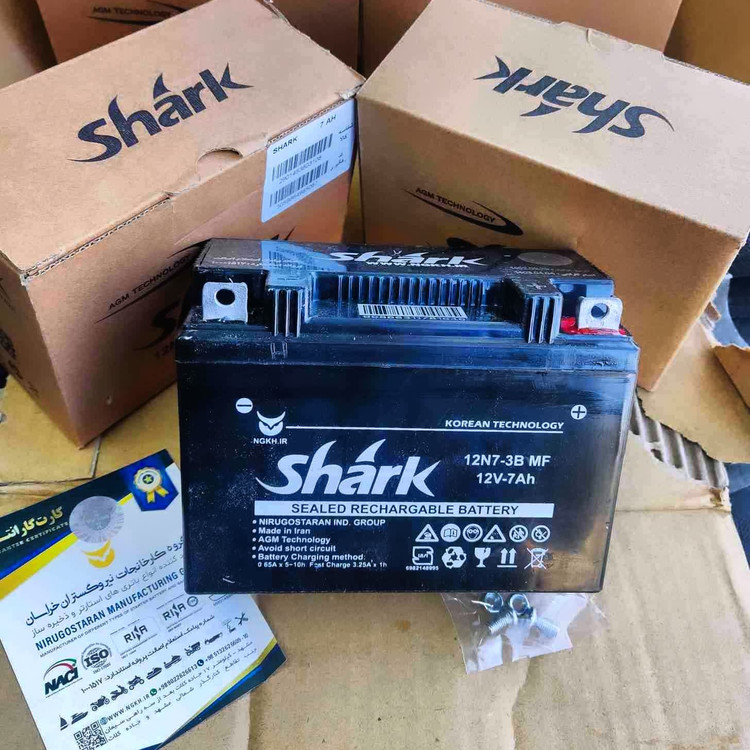 باطری ۷آمپر موتورسیکلت هندا برند شارک با گارانتی ۶ ماهه