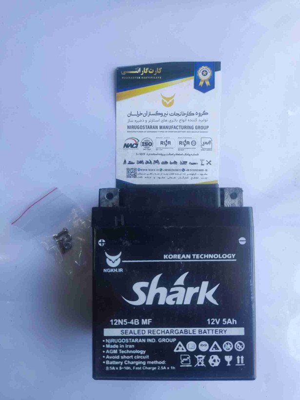 باتری ۵ آمپر موتورسیکلت برند شارک با۶ ماه گارانتی